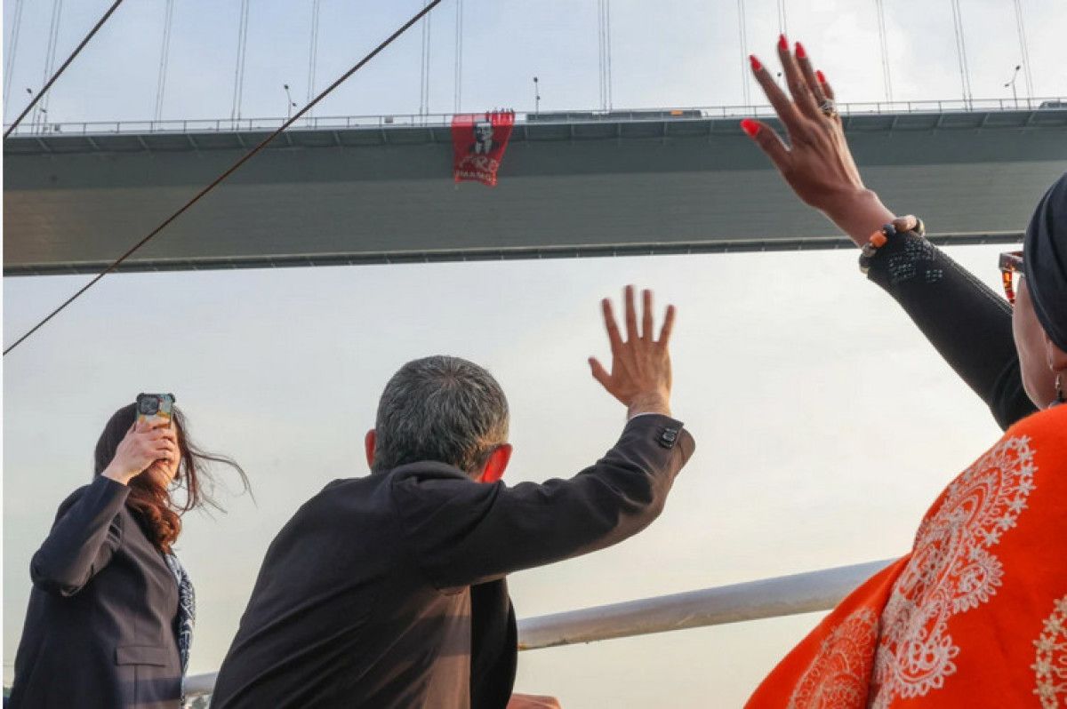 CHP’li milletvekilleri, bugün saat 19.40’ta 15 Temmuz Şehitler Köprüsü’nün kuzey yol girişine Ekrem İmamoğlu’nun korsan pankartını astı.