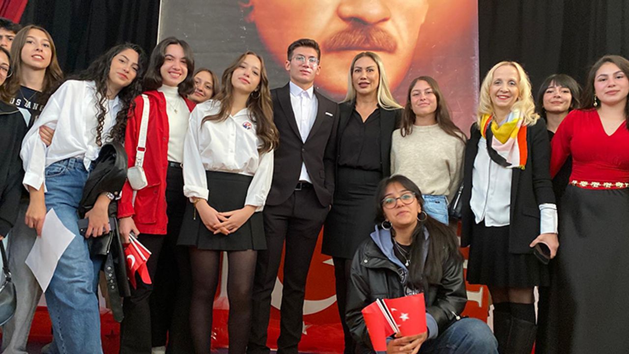 Kutlamaların sonunda öğrenciler, dev Türk bayrağıyla “102” formasyonu oluşturdu. Program, İstiklal Marşı’nın okunması ve hatıra fotoğraflarıyla sona erdi.