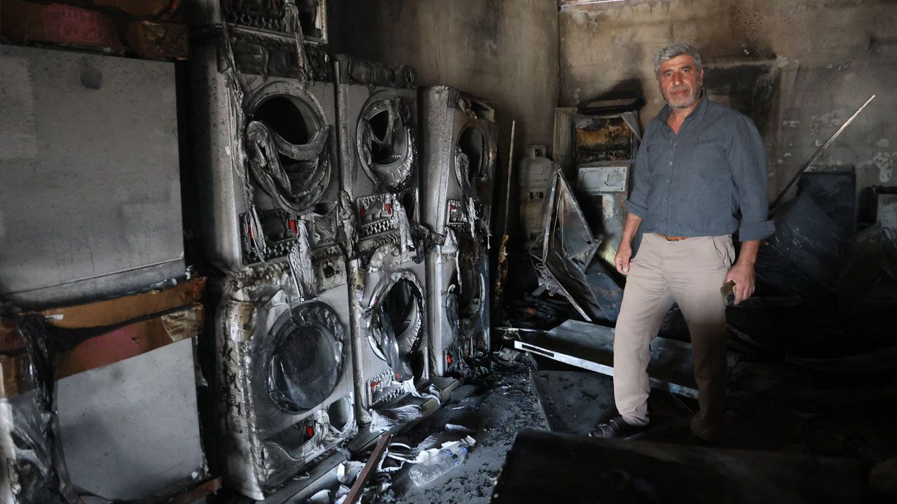Babası yangından bir hafta önce vefat eden Mithat Uslu, iş yerindeki yangında 3 milyon TL'lik kaybı olduğunu ifade ederek, "Depremden çok şükür sağ salim kurtulduk. Evimiz ve iş yerimiz gitti. Depremden sonra yeniden ayağa kalkmaya çalışırken bu depoyu yaptık. Yüksek voltajdan gelen elektrik kısa devre yaparak yangın çıktı ve iş yerimizi kaybettik. Yangın dolabın fişinden çıktı. Babamın ölümünden 7 gün sonra ve komşumuzun cenazesinden geldiğimizde hiçbir şey yoktu. Evde otururken torunumla oynuyordum. Komşular korna çalarak bize doğru geliyorlar. Komşular 'Mithat abi depon yanıyor, haberin yok mu' diye bağırmaya başladılar. İtfaiyeyi aradık. Ürünlerin hepsi sıfırdı ve ambalajları hale üzerindeydi. Yanan ürünlerin hepsi sıfır ve Altus markaydı. Stokta yazana göre yaklaşık 3 milyon TL değerinde malım yandı. Yan taraftaki ürünler de yangında zarar gördü" ifadelerini kullandı.