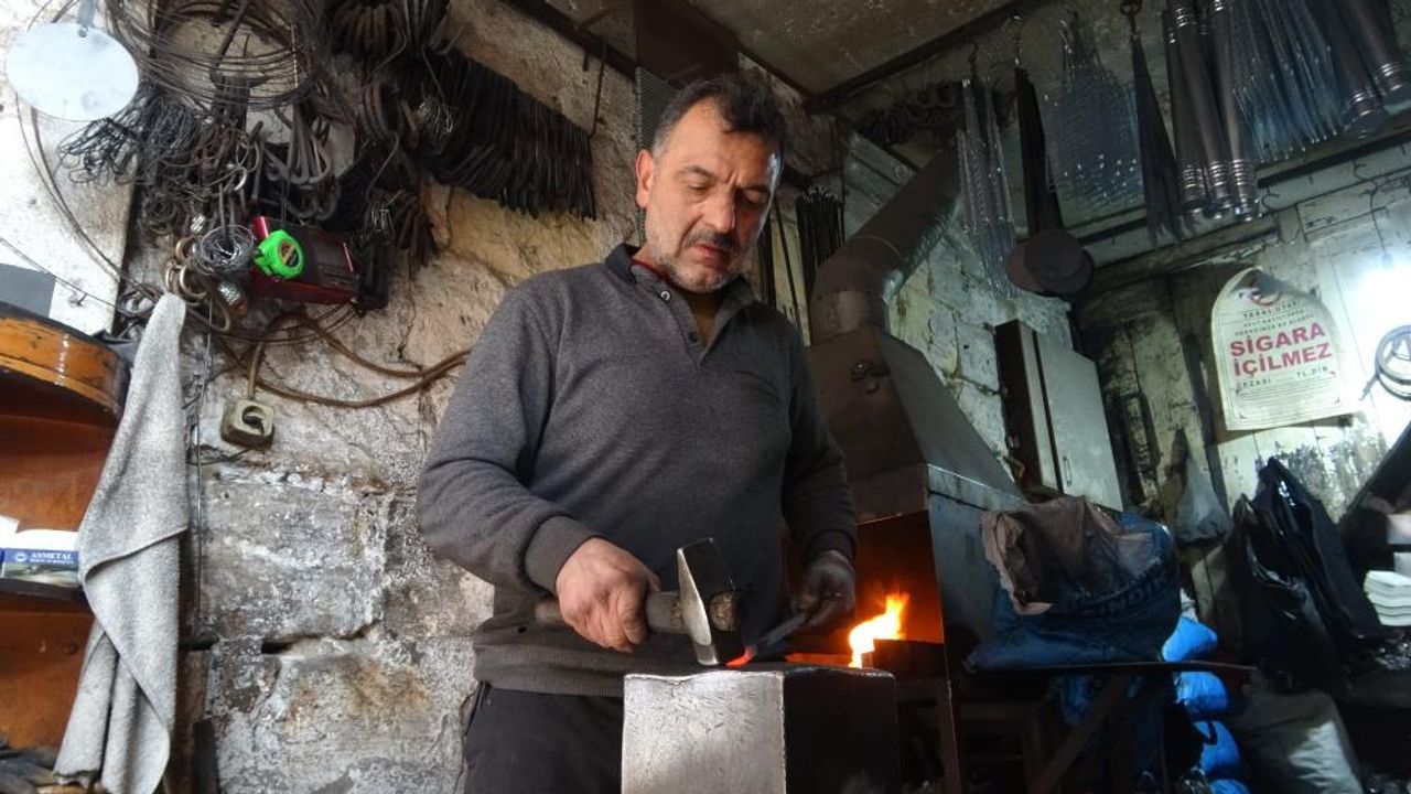 El emeği ile demir döven ustaların azaldığını belirten Gürban, "Allah elimizden almadığı müddetçe bu mesleği ölümüz bile olsa yaparız. 2014'te dükkanı ben devir aldım. 11 senedir dükkanı çalıştırıyorum. Ağırlıklı olarak kebap şişi yapıyorum. Kebap şişleri, lokanta şişleri ve ev şişleri yapıyoruz. Ben genelde kebap şişi yapıyorum" şeklinde konuştu.