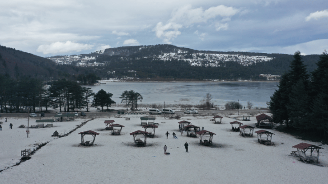 Özellikle çocuklu ailelerin yoğunlukta olduğu Abant'ta çocuklar ve gençler, kar kalınlığının 20 santimetreyi bulduğu alanlarda şambriyeller, kızaklar ve poşetlerle kayarak keyifli vakit geçirdi.
