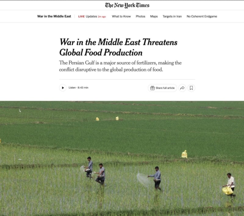 Amerikan New York Times (NYT) gazetesinin yayımladığı analize göre, bölgedeki savaş sadece enerji hatlarını değil, dünyanın en stratejik tarım girdilerinden biri olan gübre tedarik zincirini de kopma noktasına getirdi.