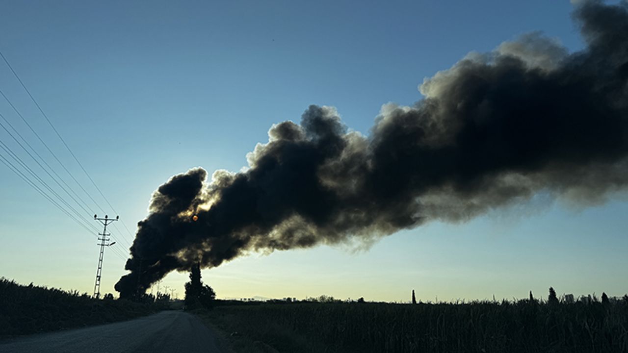 İhbar üzerine bölgeye sevk edilen Adana Büyükşehir Belediyesi itfaiye ekipleri yangına müdahale ediyor.