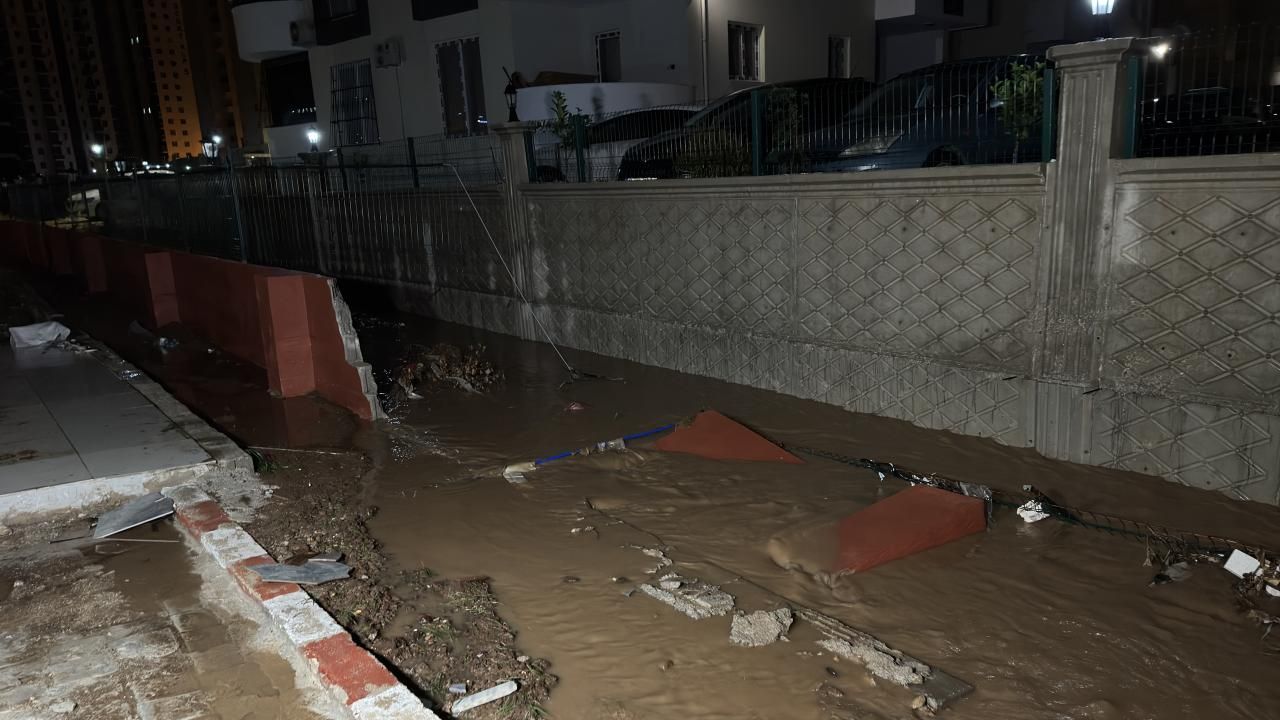 Merkez Sarıçam ilçesi Elif Su Uludağ Mahallesi'ndeki bir siteyi su bastı. Yağışın etkisiyle sitenin istinat duvarı da çöktü.