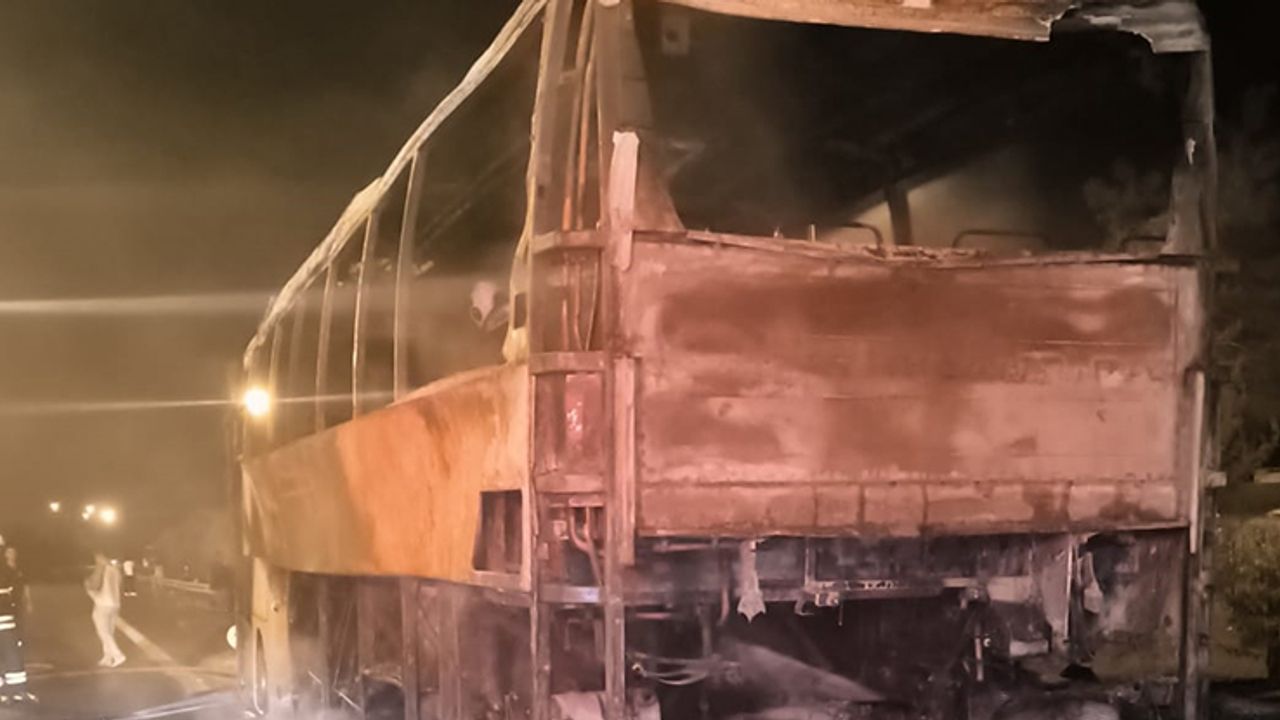 İtfaiyenin müdahalesiyle söndürülen yangın sonucu otobüs kullanılamaz hale geldi.