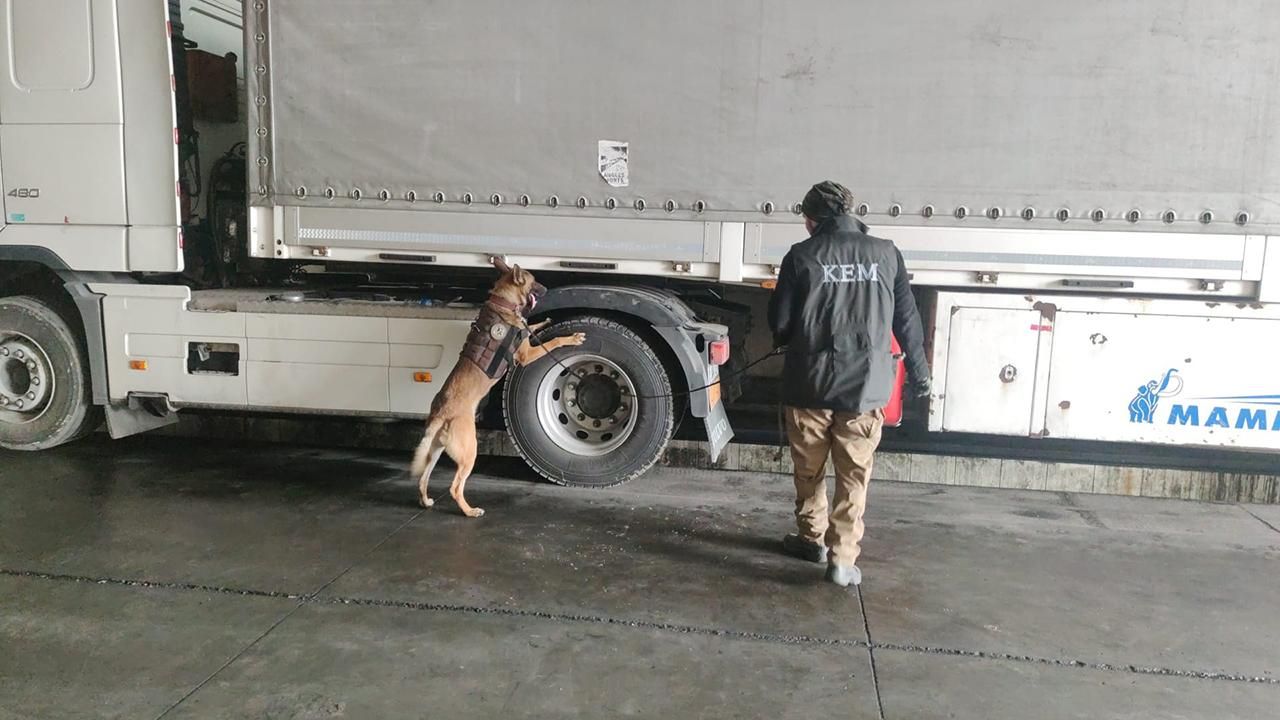 Narkotik dedektör köpeğinin desteğiyle tırda yapılan aramada, 24 kilo 810 gram sıvı sentetik uyuşturucu ele geçirildi.