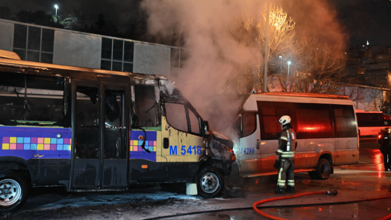Kısa sürede minibüsün tamamını saran alevler aracın yanında bulunan diğer minibüse de sıçradı.