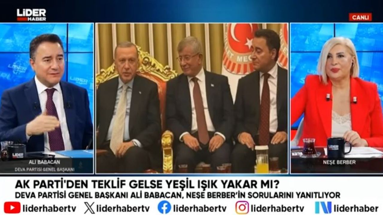 DEVA Partisi Genel Başkanı Ali Babacan, Lider Haber TV’de yayınlanan “Soruyoruz” programında Neşe Berber’in sorularını yanıtladı.