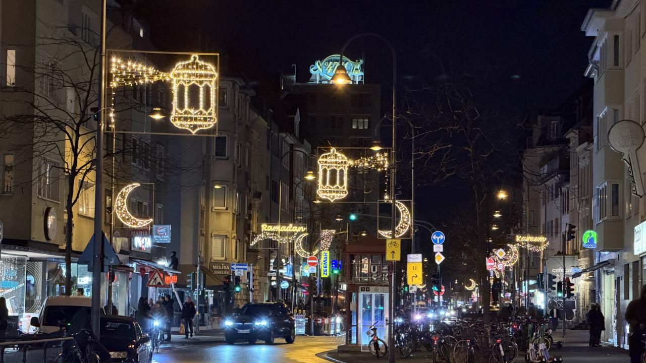 Frankfurt kentindeki şehir merkezinde yer alan bir cadde de ramazan ayına özel olarak süslenerek ışıklandırıldı.