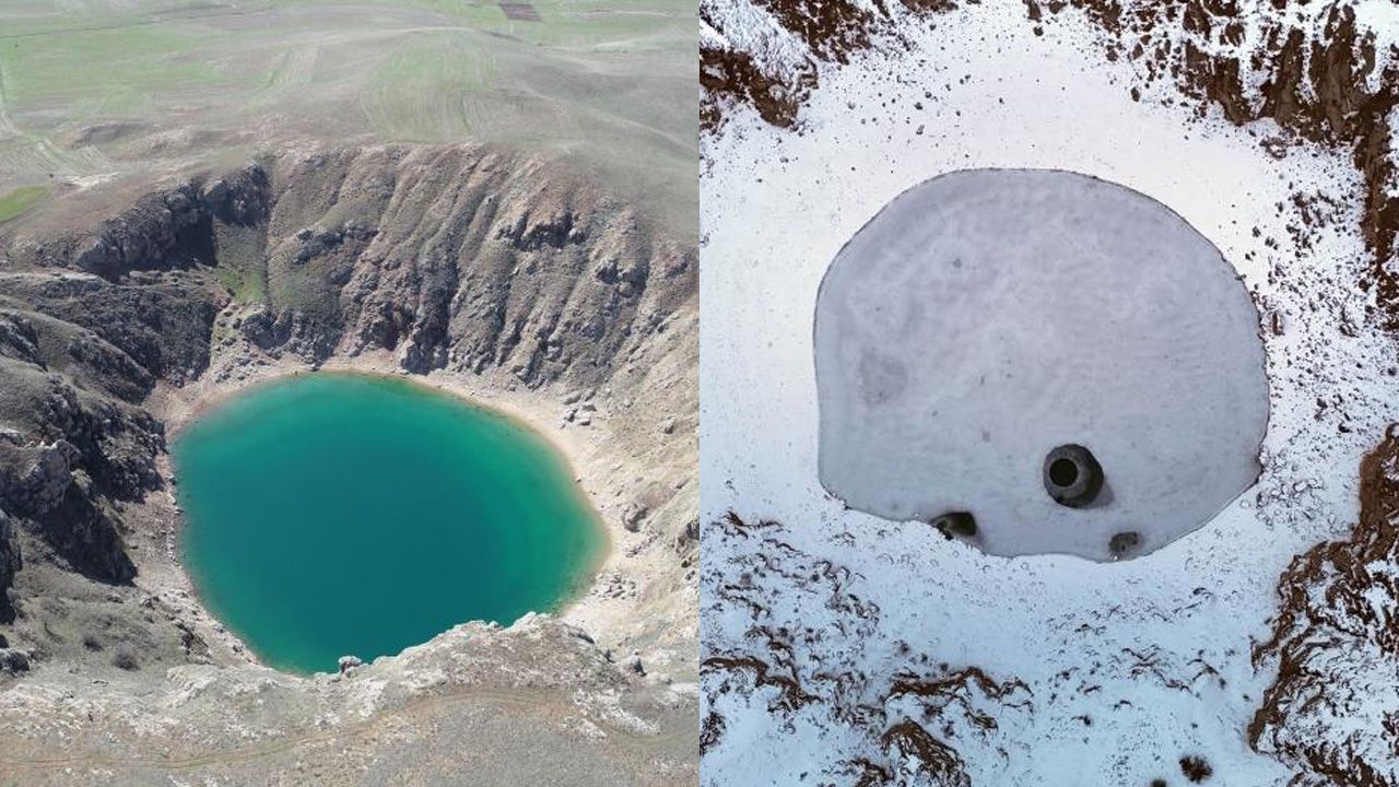 Sivas'ın Zara ilçesine bağlı Canova köyüne yaklaşık 2 kilometre mesafede bulunan Kızılçan Gölü, özellikleri ile dikkat çekiyor. Uçsuz bucaksız arazide 100 metrelik bir çukurda yer alan Kızılçan Gölü, yaz aylarında turkuaz rengi ile Anadolu'nun nazar boncuğu olarak da adlandırılıyor. Kentin en büyük krater göllerinden birisi olan Kızılçan Gölü, son günlerde etkili olan soğuk hava nedeniyle dondu. Kar kalınlığının yer yer 30 santimetreyi bulduğu arazide kartpostallık görüntüler oluştu. Donan göl, havadan görüntülendi.