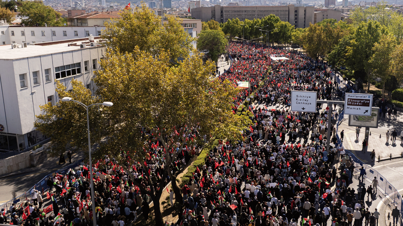 Ankara Filistin Dayanışma Platformuna (ANFİDAP) mensup sivil toplum kuruluşu üyeleri ile yaşlılar, gençler ve çocukların da aralarında olduğu binlerce kişi, Gazze'de yaşanan soykırıma dikkati çekmek ve İsrail'e tepkilerini yükseltmek için Melike Hatun Camisi önünde toplandı.