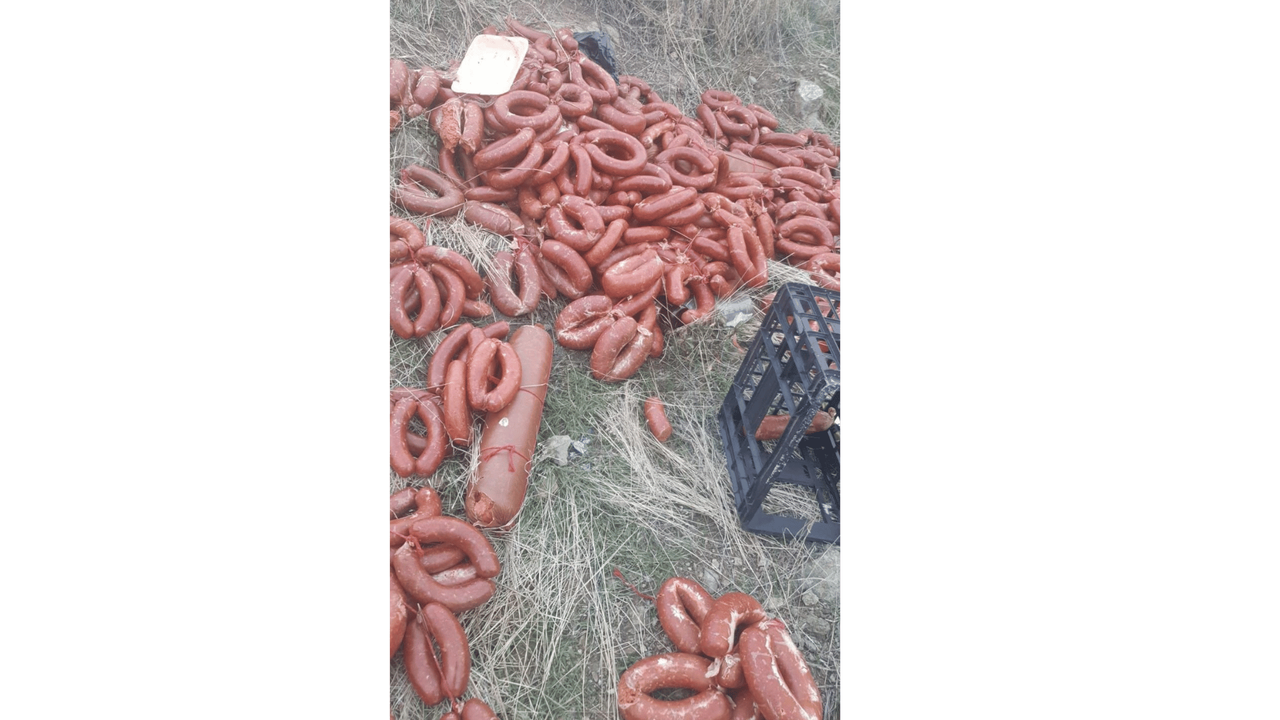 Edinilen bilgiye göre, Karşıyaka Mahallesi’nde bulunan boş bir araziye kimler tarafından ve ne amaçla bırakıldığı belirlenemeyen et ürünleri, bölgeden geçen bir vatandaş tarafından fark edildi. Çok sayıda sucuk, kavurma ve salamın gelişigüzel şekilde atıldığını gören vatandaş, durumu cep telefonuyla kaydederek yetkili kurumlara ihbarda bulundu.