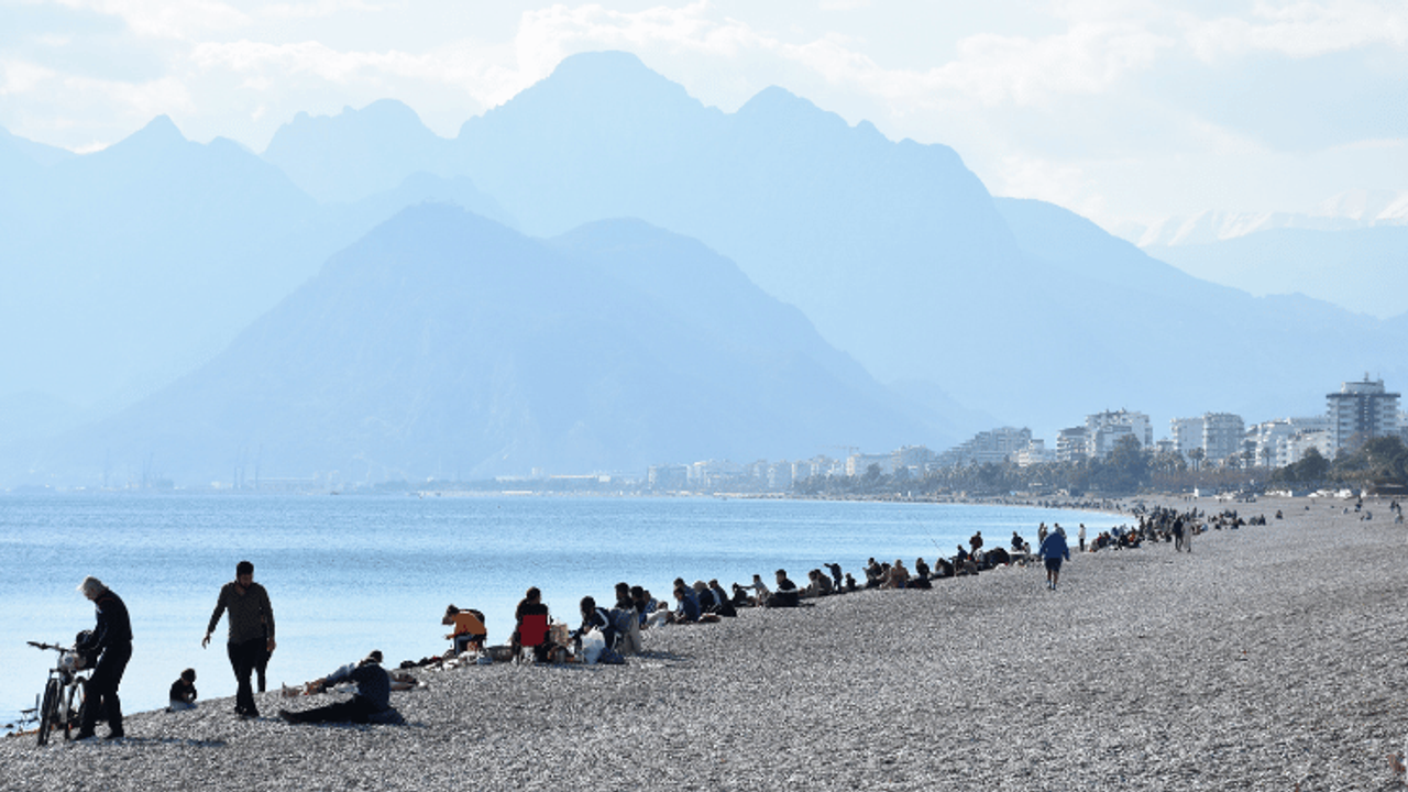 Güneşli havayı fırsat bilenler, Konyaaltı Sahili'nde vakit geçirdi.