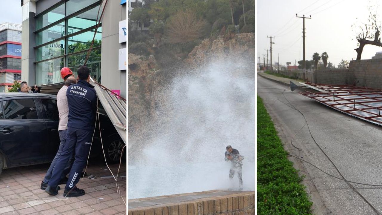 Saatteki hızı 50 kilometreyi bulan rüzgar nedeniyle kentin bazı noktalarında olumsuzluklara neden oldu. Gazi Bulvarı'nda bir iş yerinin çatısı şiddetli rüzgara dayanamayarak yola uçtu. Uçan çatı nedeniyle elektrik telleri koparken, ekipler arızanın giderilmesi için bölgede onarım çalışması yaptı. Termessos Bulvarı üzerinde ise bir işyerine ait reklam tabelası park halindeki 34 VGK 35 plakalı aracın üzerine devrildi. Devrilen tabela araçta maddi hasar oluşurken tabela itfaiye ve polis ekipleri tarafından kaldırılarak otomobil bulunduğu yerden çıkarıldı.