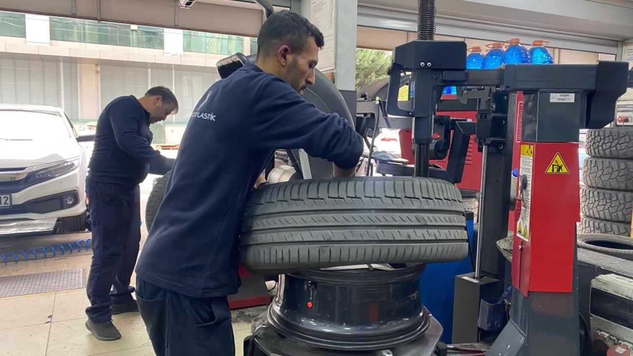 Ankara'da bir lastikçide çalışan Bilal Kara, hava artı 7 dereceden aşağı düştüğü zaman mutlaka kış lastiği takılması gerektiğine dikkati çekerek, bunun sebebinin asfaltın soğumasından kaynaklı olduğunu söyledi. Kara, "Asfalt soğuduğu için araçlarda fren mesafesi uzar. Bunun için önce can güvenliği, sonra mal güvenliği için kış lastiğine geçmemiz gerekiyor" dedi.