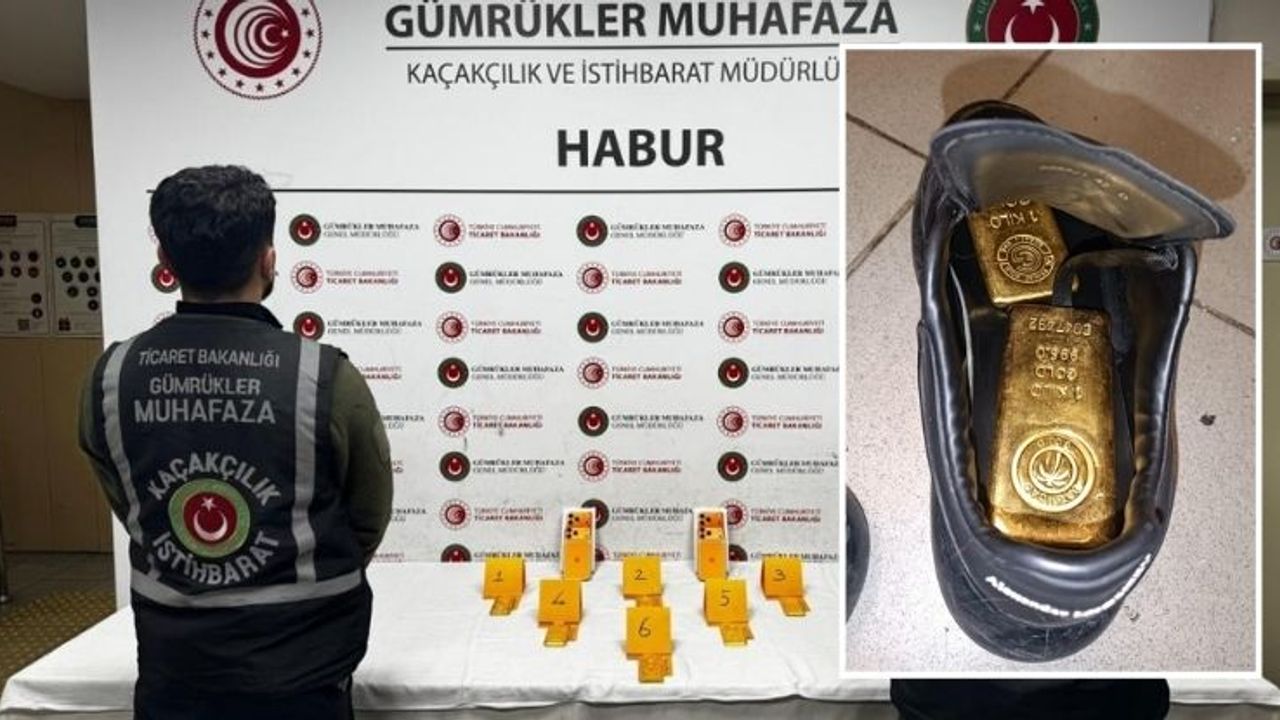 Şırnak’taki Habur Gümrük Kapısı'nda ayakkabıların içerisine gizlenmiş vaziyette 41 kilogram altın ele geçirildi.