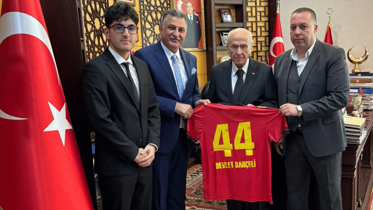 Kulüp Başkanı Aydın İşkur, tarafından MHP Genel Başkanı Devlet Bahçeli’ye üzerinde adının yazılı olduğu 44 numaralı Yeni Malatyaspor forması hediye etti.