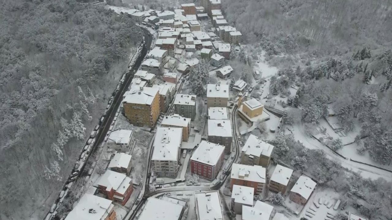 Yoğun kar yağışı ile birlikte ilçe beyaza büründü. Doğayla bütünleşen kar yağışı kartpostallık görüntüler ortaya çıkardı. Görenleri mest eden manzara havadan görüntülendi. Görüntülerde çatıların üzerini kar kapladığı görülüyor.