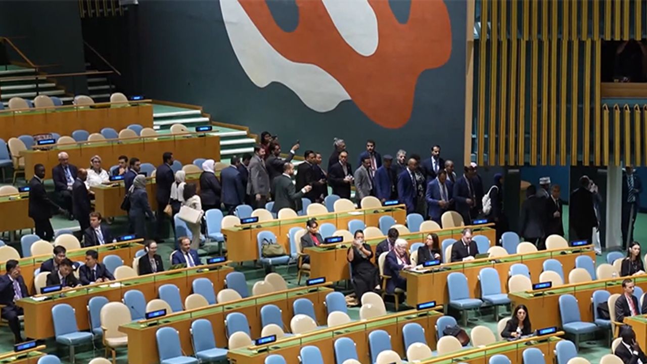 Netanyahu, BM 80. Genel Kurulu'na hitap etmek için salona girdiğinde, çok sayıda ülke temsilcisinin salonu terk etmeye başladığı ve salonun önemli ölçüde boşaldığı görüldü.