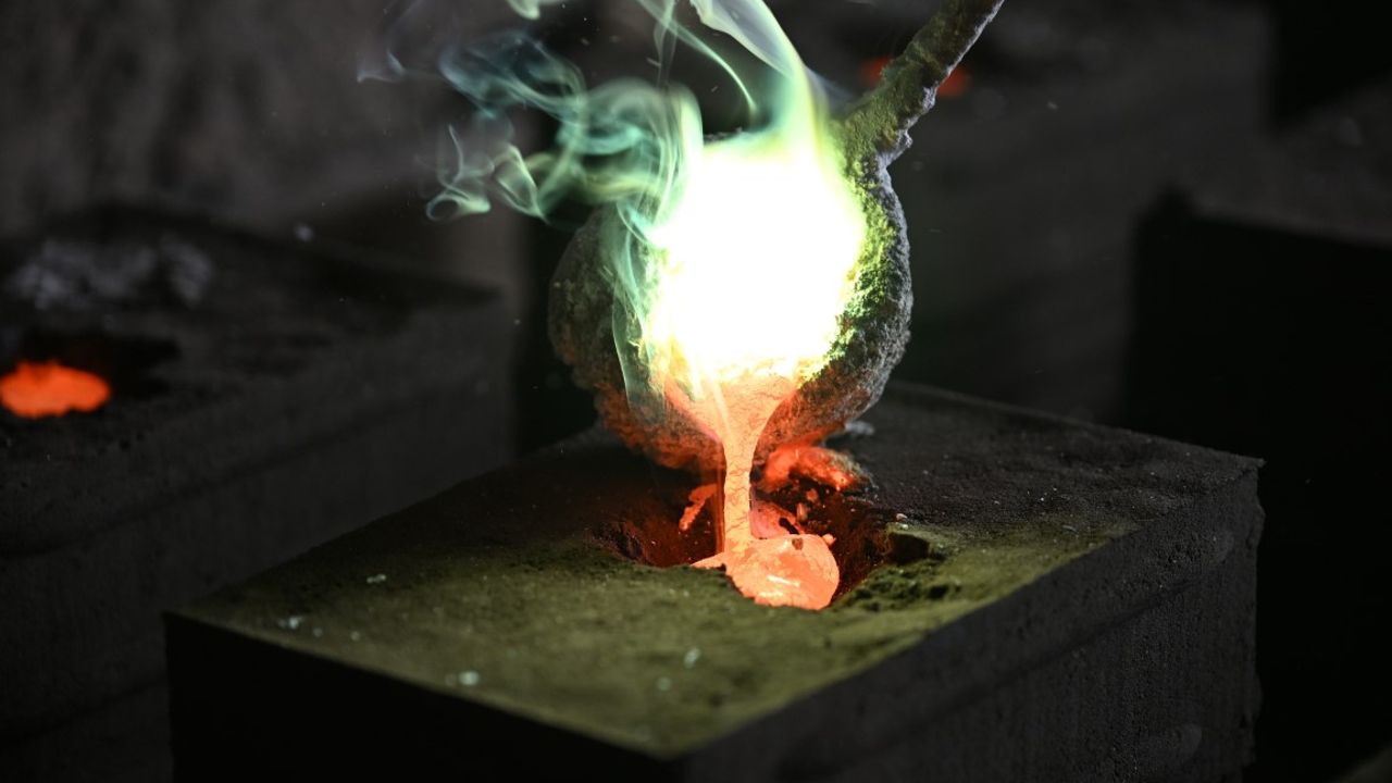 Düzgün, süreci şöyle anlattı: "İlk önce 'göbek' dediğimiz maşaları hazırlıyoruz. Ardından Konya'da özel olarak yaptırdığım kalıplara, erittiğimiz sarı malzemeyi döküyoruz."