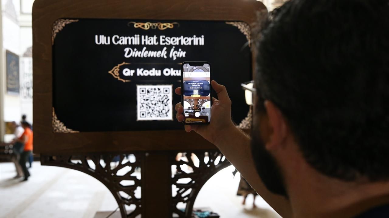 "Caminin üç kapısının girişindeki ekranlara karekod (QR) koymak suretiyle camide bulunan 110 hattın tamamının kimler tarafından yazıldığını, anlamının ne olduğunu tarihçesiyle birlikte dijital ortamda hazırladık. Çağımız teknoloji çağı. Hem Ulu Cami'yi teknolojiyle buluşturmak hem de gençlerimiz Ulu Cami'ye girdiklerinde camideki bu hat sanatlarını sadece seyretmekle kalmasın istedik. Ecdadımızın yazdıklarıyla yeni neslimizi buluşturmayı amaçladık. Bu amaçla ziyaretçiler 110 hat yazımızın tarihçesini, anlamını Türkçe sesli olarak da dinleyebildikleri gibi yazılı olarak da bunu görebilecekler."