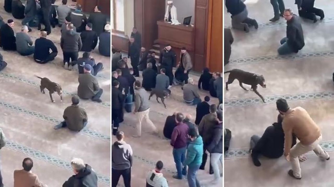 Olay, dün cuma namazı hazırlıklarının sürdüğü sırada meydana geldi. Tasmalı pitbull, açık kapıdan cami içerisine girdi. Köpeği fark eden cemaat, durumu görevlilere bildirirken, cami içinde kısa süreli hareketlilik yaşandı.