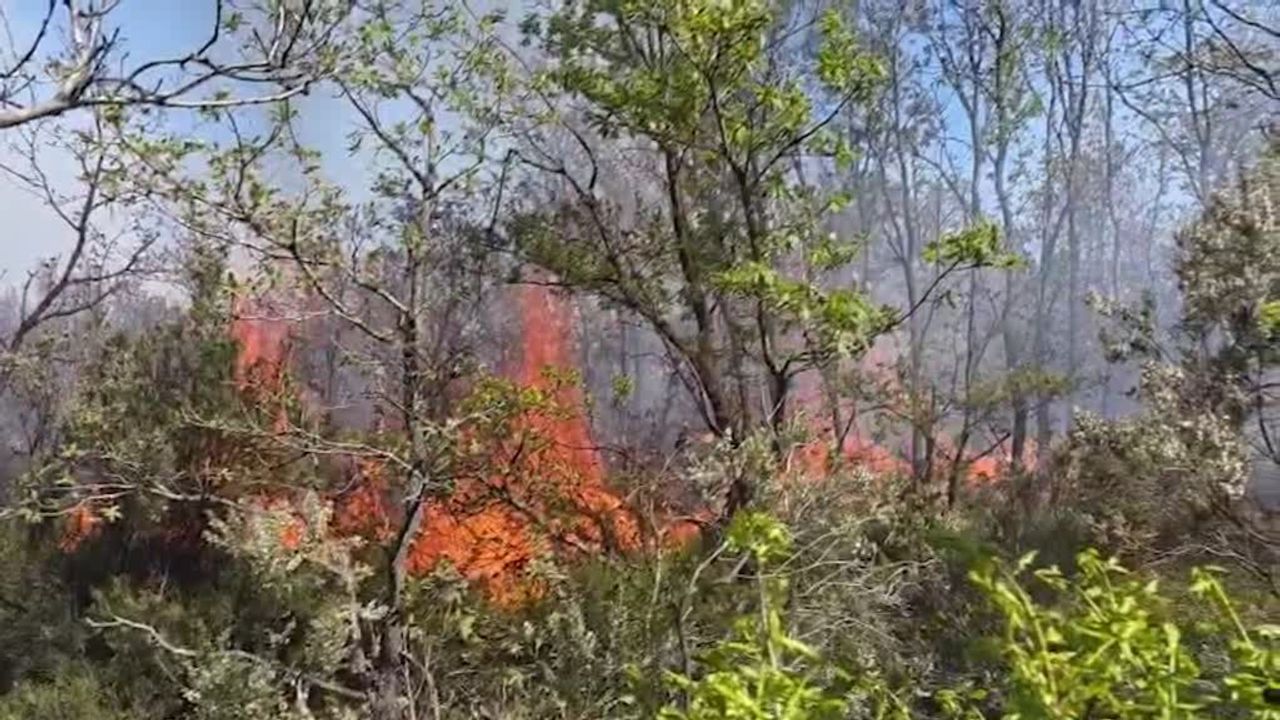 İtfaiye ekiplerinin müdahalesiyle söndürülen yangın nedeniyle yaklaşık 10 dönümlük alanın zarar gördüğü öğrenildi.