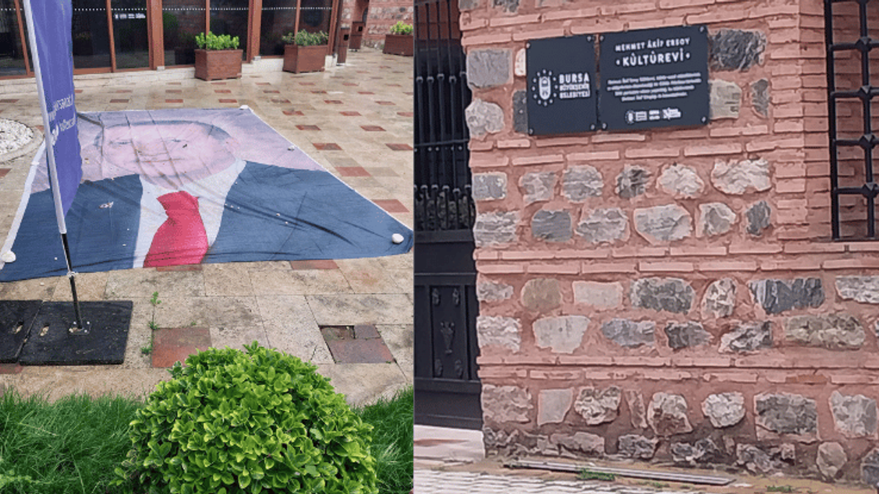 CHP’li Bursa Büyükşehir Belediyesi’ne ait Mehmet Akif Ersoy Kültür Evi’nde Cumhurbaşkanı Erdoğan’a yönelik büyük bir saygısızlığa imza atıldı. Cumhurbaşkanı Erdoğan’a ait bir poster, Kültür Evi’nin bahçesinde yere serili halde bulundu. Söz konusu durumu fark eden vatandaşlar duruma büyük tepki gösterdi. Skandal olaya ilişkin provokasyon iddiaları dillendirilirken Bursa Büyükşehir Belediyesi’nden ise açıklama geldi.