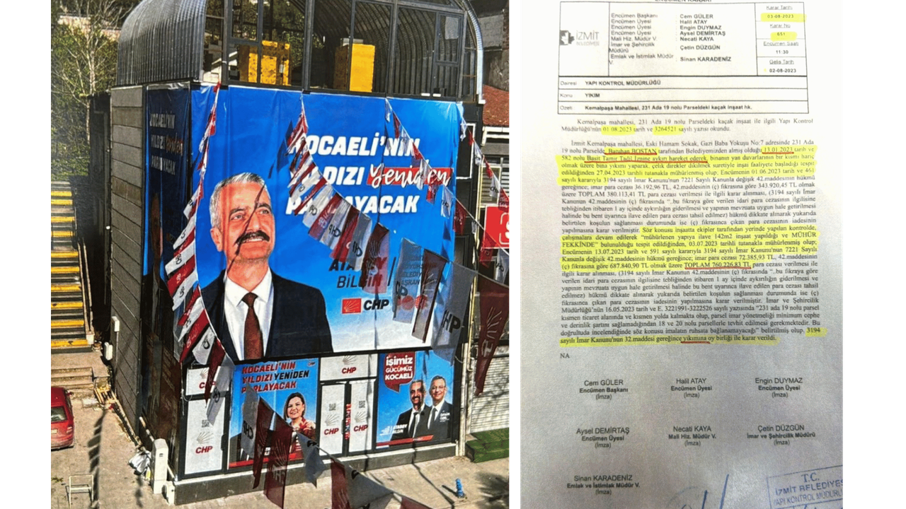 "1 Ağustos 2023'te bu bina için yıkım kararı çıktığını ve 760 bin TL ceza kesildiğini biz hatırlatınca, 3 yıldır hasır altı edilen 900'den fazla kaçak binanın listesini bir gecede basına servis ettiler. Cezaları kendi arkadaşlarına bile kestiklerini duyurarak sözde tarafsız olduklarını göstermeye çalışıyorlar. Asıl amaç, Eski Hamam Sokak'taki bu binayı bu haberlerin arasında karambole getirmek."
