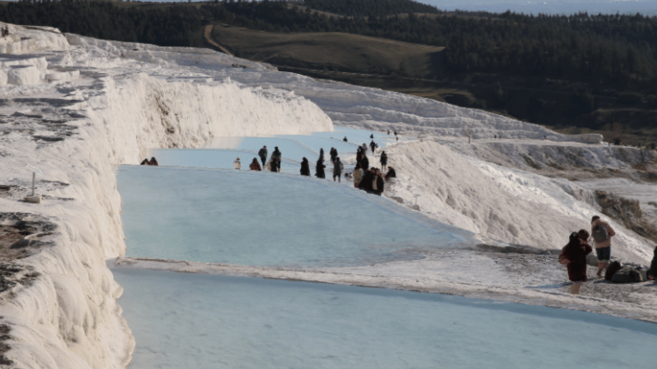 Dünyanın dört bir tarafından bölgeye gelen yerli ve yabancı turistler, travertenleri ve çevredeki antik kentleri gezme fırsatı buluyor.