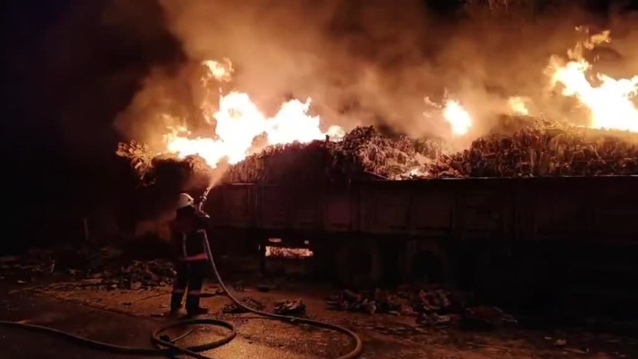 Lastiklerden atık plastiklere sıçrayan yangın, kısa sürede dorsenin tamamına yayıldı.