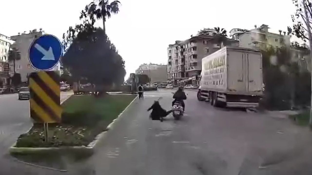 Kazanın ardından çevredeki vatandaşlar motosikletten düşen kadının yardımına koştuğu görülüyor.