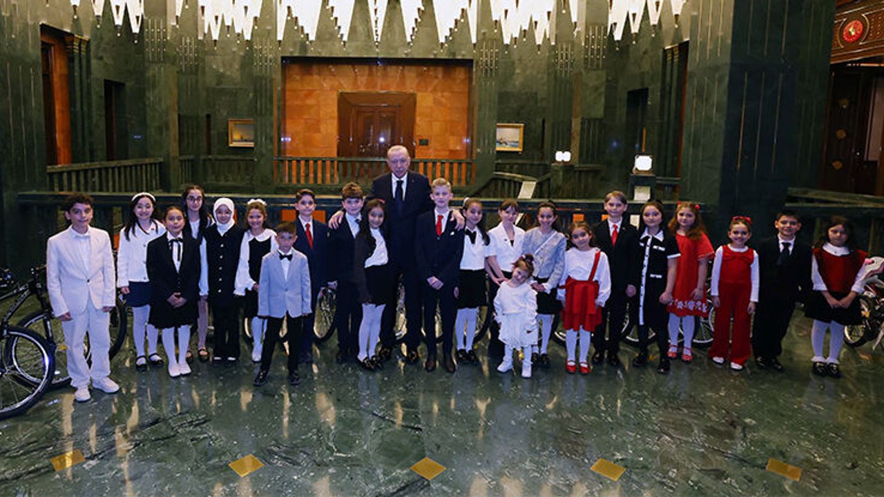 Erdoğan, Cumhurbaşkanlığı Külliyesi'nde, Milli Eğitim Bakanı Yusuf Tekin ve beraberindeki çocukları kabul etti.