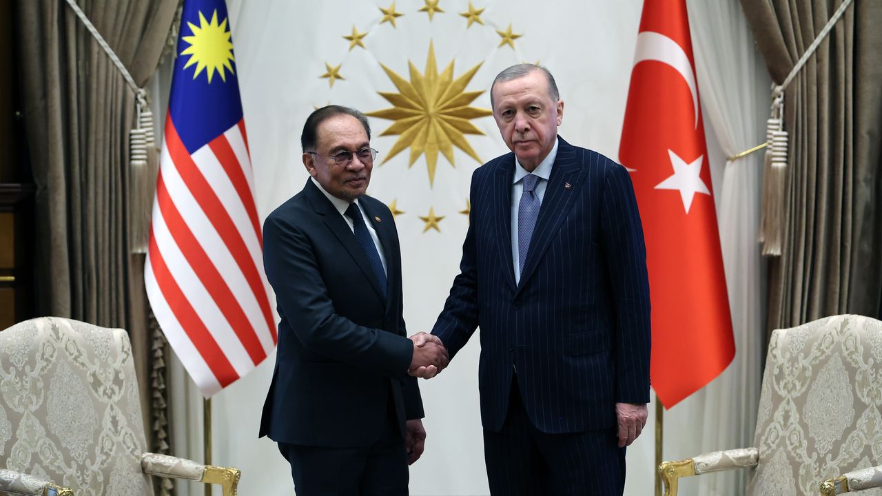 Cumhurbaşkanı Erdoğan ve Malezya Başbakanı Enver İbrahim, Cumhurbaşkanlığı Külliyesi'nde Türkiye-Malezya Yüksek Düzeyli Stratejik İşbirliği Konseyi Birinci Toplantısı'na ve Anlaşmaların İmza Töreni'ne iştirak etti, ortak basın toplantısı düzenledi.