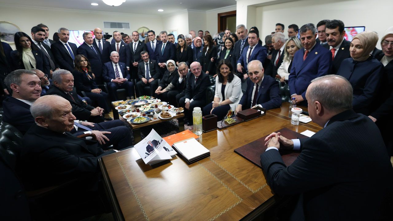 TBMM'de 28. Dönem 4. Yasama Yılı, Cumhurbaşkanı Recep Tayyip Erdoğan’ın konuşmasıyla başladı. Cumhurbaşkanı Erdoğan, konuşması sonrası Başkanlık Divanı’nda Meclis Başkanı Numan Kurtulmuş, MHP Genel Başkanı Devlet Bahçeli, DEM Parti Eş Genel Başkanları Tülay Hatimoğulları ile Tuncel Bakırhan ve İYİ Parti Genel Başkanı Müsavat Dervişoğlu ile bir araya geldi. Görüşme yaklaşık yarım saat sürdü. Görüşme sonrası basın mensuplarının sorularını yanıtlayan Cumhurbaşkanı Erdoğan, "Çok samimi bir havada görüşmemizi yaptık" dedi.