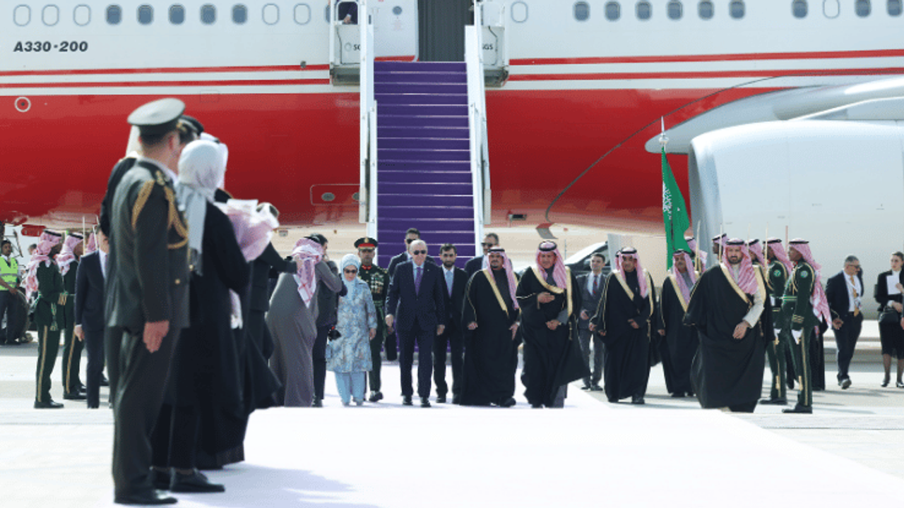 Cumhurbaşkanı Erdoğan ile birlikte eşi Emine Erdoğan, Dışişleri Bakanı Hakan Fidan, Hazine ve Maliye Bakanı Mehmet Şimşek, Aile ve Sosyal Hizmetler Bakanı Mahinur Özdemir Göktaş, Enerji ve Tabii Kaynaklar Bakanı Alparslan Bayraktar, Sanayi ve Teknoloji Bakanı Mehmet Fatih Kacır, Gençlik ve Spor Bakanı Osman Aşkın Bak, Milli Savunma Bakanı Yaşar Güler, Sağlık Bakanı Kemal Memişoğlu, Cumhurbaşkanlığı İletişim Başkanı Burhanettin Duran, Cumhurbaşkanı Dış Politika ve Güvenlik Başdanışmanı Akif Çağatay Kılıç ile bazı yetkililer de Suudi Arabistan'a geldi.