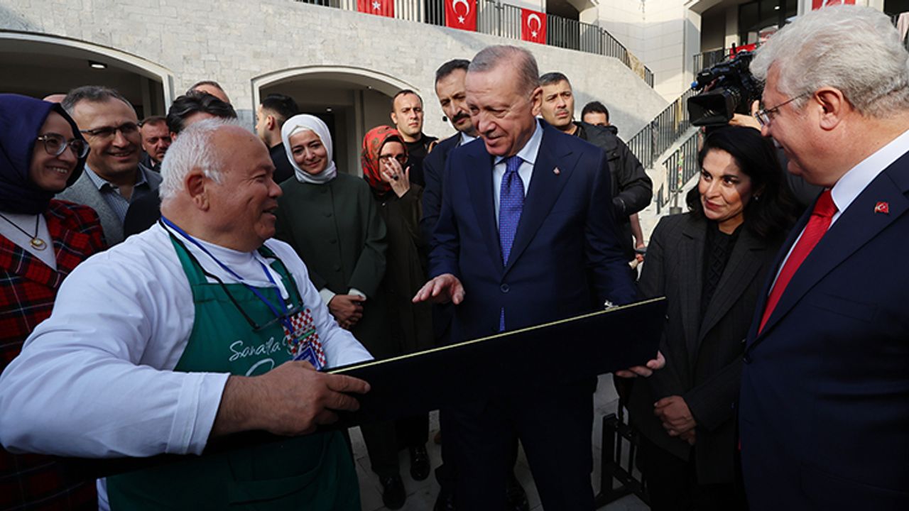 Cumhurbaşkanı Erdoğan'a ustalar tarafından tablo, maket gemi, tespih, rahle ve atkı hediye edildi.