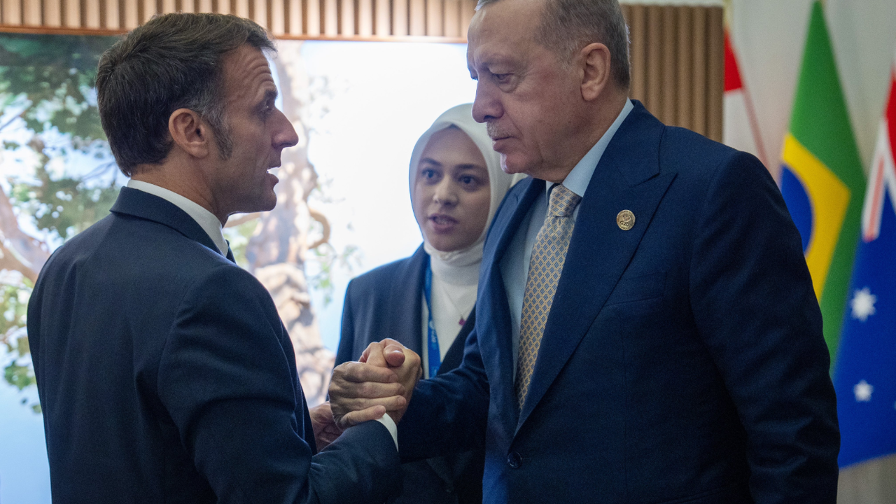 Cumhurbaşkanı Recep Tayyip Erdoğan, G20 Liderler Zirvesi için bulunduğu Güney Afrika Cumhuriyeti’nde Fransa Cumhurbaşkanı Emmanuel Macron ile bir görüşme gerçekleştirdi.