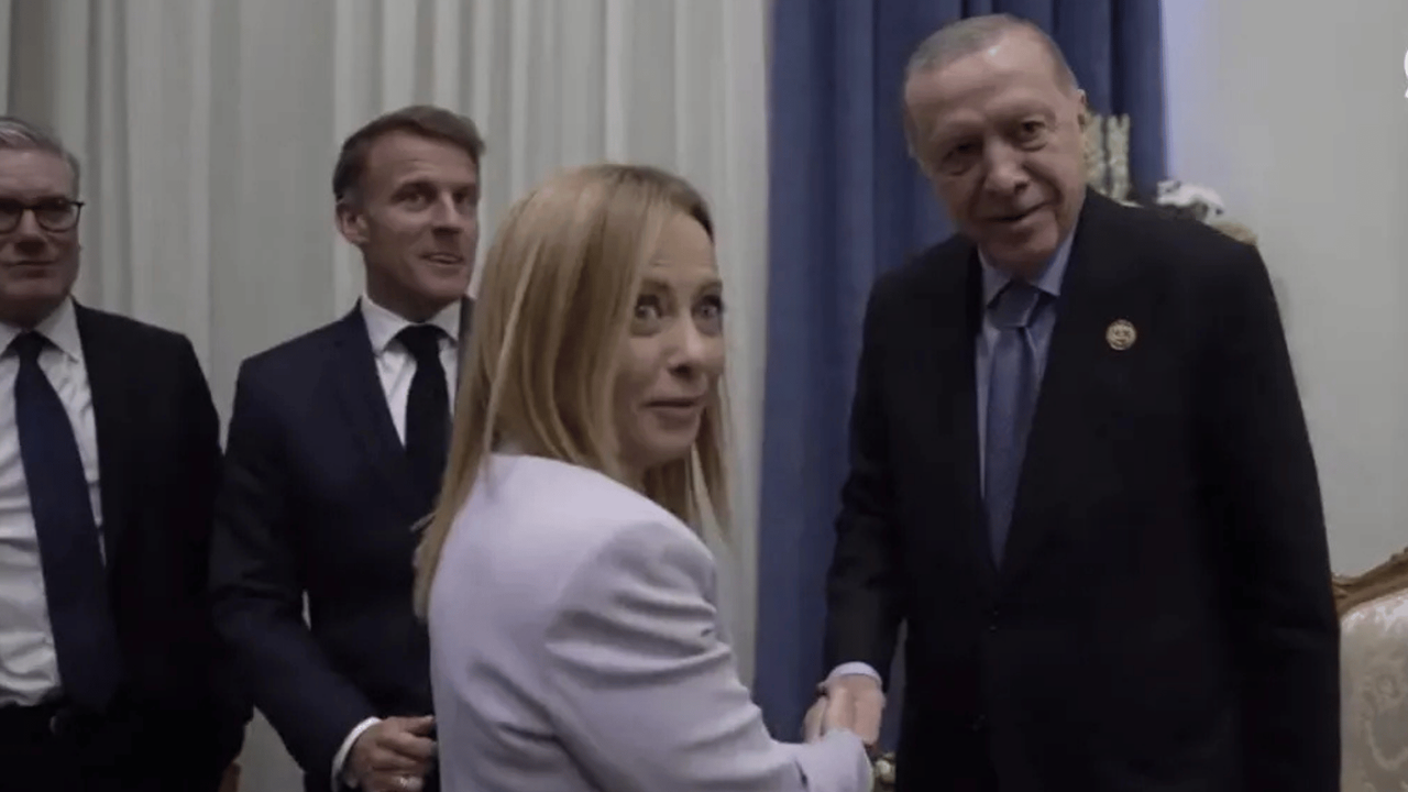 Meloni ise "Hayır hayır" dedikten sonra gülerek uzaklaştı.