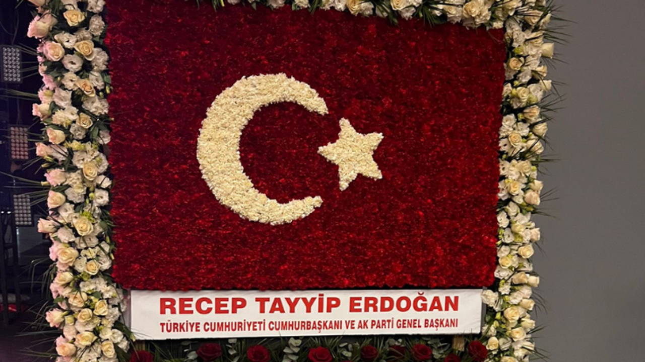 Erdoğan'ın, ATO Congresium'da düzenlenecek MHP'nin 57. Kuruluş Yıl Dönümü Programı'na gönderdiği çiçek aranjmanı, beyaz gül ile karanfillerden oluşuyor.
