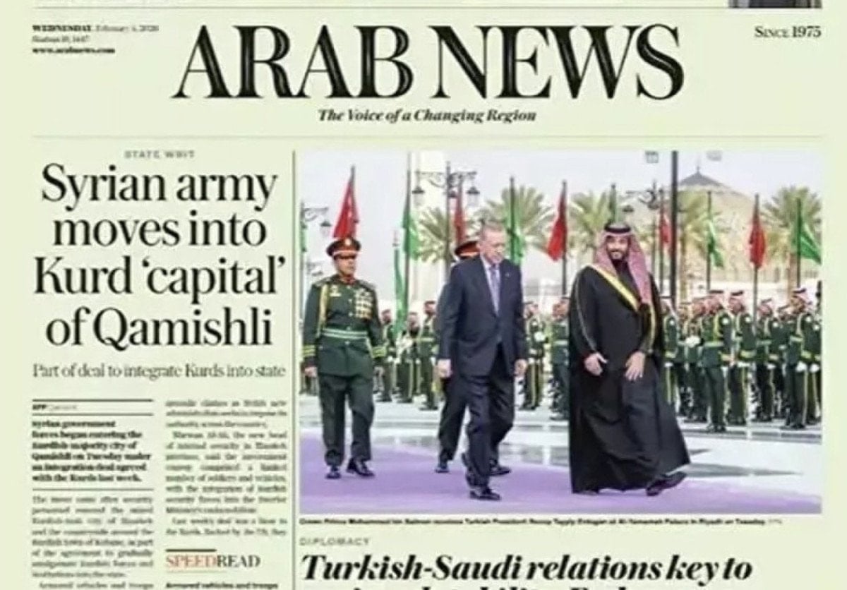 Saudi Gazette, Cumhurbaşkanı Erdoğan’ın Riyad’daki El-Yemame Sarayı’nda resmi törenle karşılandığını ve iki ülke arasında resmi görüşmeler yapıldığını aktarırken Al Madina gazetesi, Türkiye–Suudi Arabistan ilişkilerini siyasi, askeri ve ekonomik ufuklarıyla ele aldı.