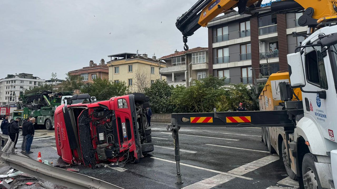 Belediye ekiplerin tırın kaldırılması için başlattığı çalışma yaklaşık 3 saatte tamamlandı.