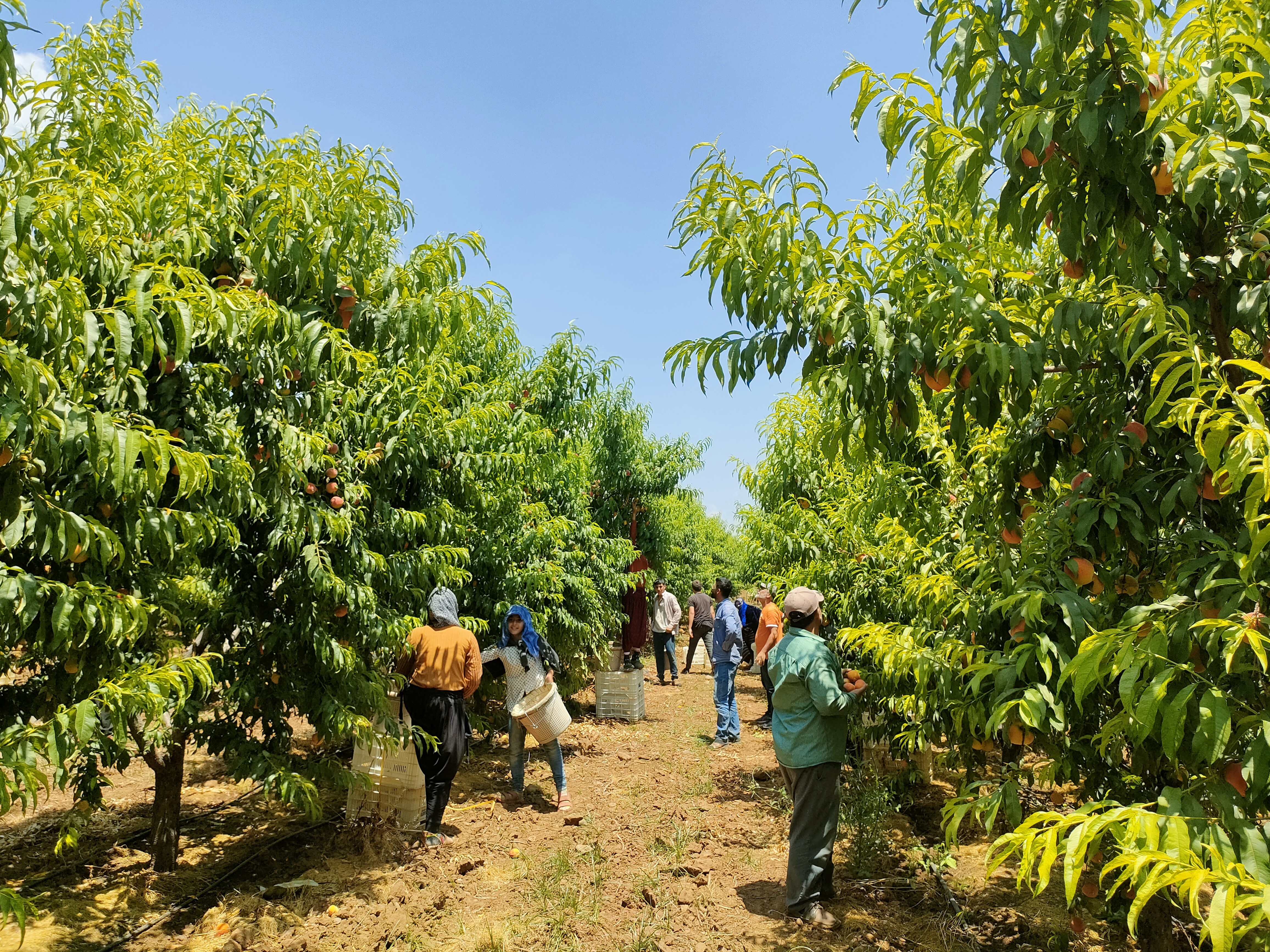 6 Şubat Kahramanmaraş merkezli depremlerin en büyük yıkımı yaptığı Hatay’da, tarımsal üretime ara verilmiyor. Amik Ovası ve çevresinde başta hububat olmak üzere bir çok meyve ve sebzenin de hasadı başladı. Sabahın erken saatlerinde şeftali bahçesine giren işçiler sıcak havaya rağmen hasat gerçekleştiriyor. Çizilip ya da darbe almaması için içi sünger kaplı kovaya toplanan şeftaliler daha sonra sandıklara konularak kamyonlarla işleme tesisine götürülüyor. Paketlenen şeftalilerin çoğunluğu başta Arap ülkeleri olmak üzere Rusya, Romanya, Ukrayna, Dubai, Lübnan, Suudi Arabistan’a ihracatı gerçekleştiriliyor.