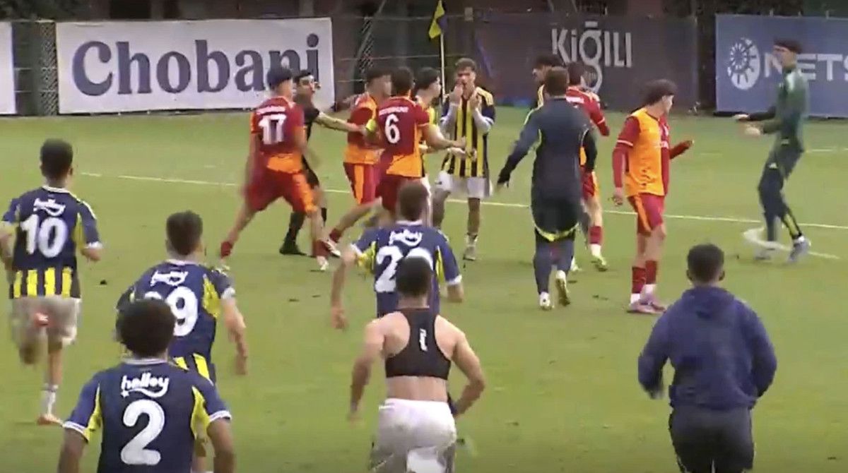 Oyuncular arasındaarbede yaşanırken, Galatasaray U19'lu futbolcunun Fenerbahçeli futbolcuya yumruk attığı görüldü.
