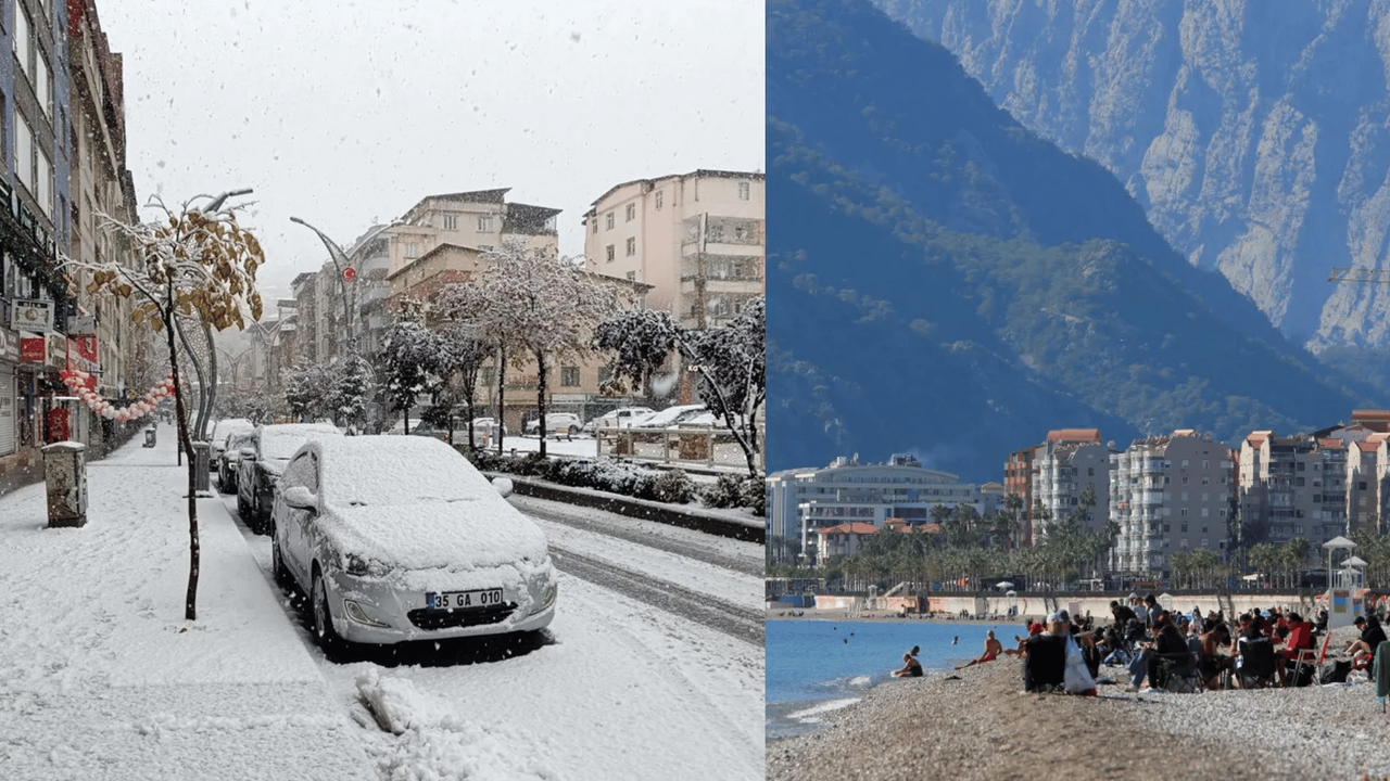 Antalya'da vatandaşlar denizin tadını çıkarırken Doğu illerinde ise yoğun kar yağışı etkiliyor.