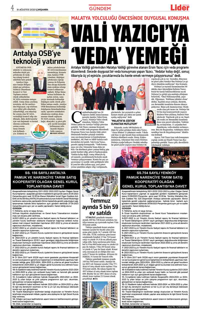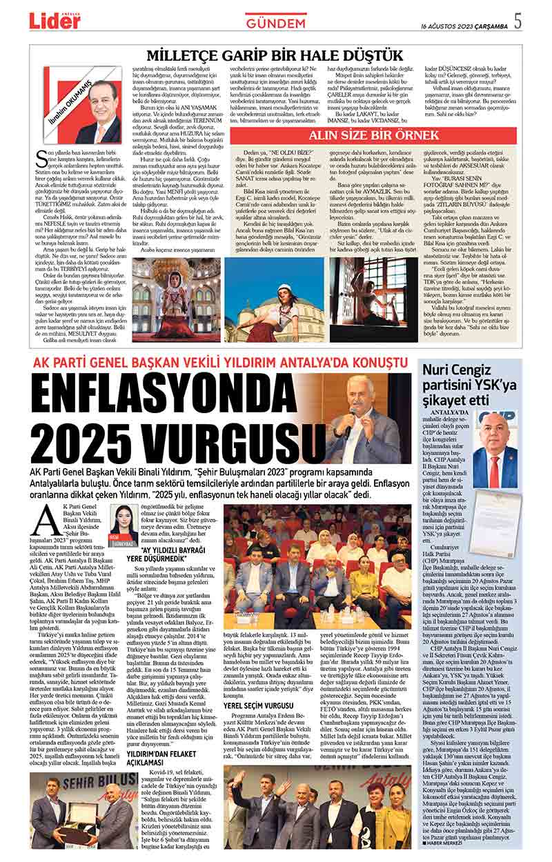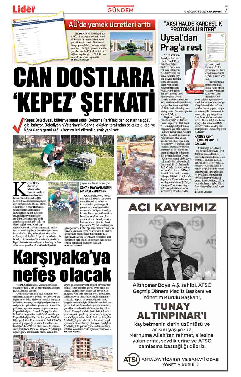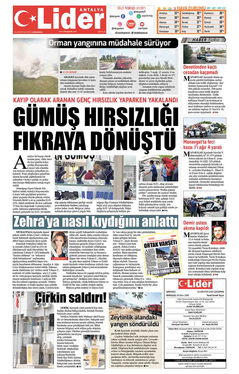 16 AĞUSTOS LİDER GAZETE ANTALYA