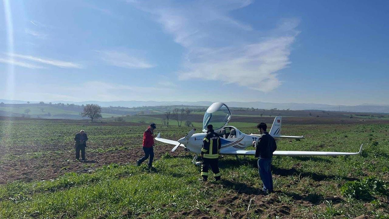 Yenişehir ilçesi semalarındaki uçuş sırasında arızalanan eğitim uçağı, kırsal Subaşı Mahallesi'ndeki bir tarlaya zorunlu iniş yaptı.