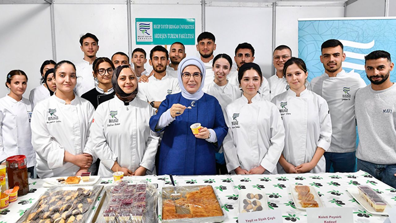 Rize çayı, Rize kavurması, Rize simidi, mısır ekmeği, enişte lokumu, karalahana sarması, Çayeli kuru fasulyesi, Anzer balı, Ayder balı, laz böreği, pepeçura, Rize mıhlaması gibi birçok yöresel lezzetin tanıtıldığı stantları ziyaret eden Erdoğan, ürünler hakkında bilgi aldı.