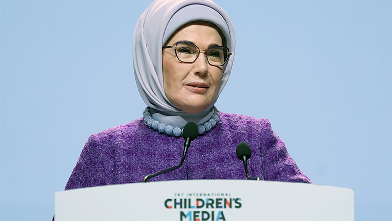 Emine Erdoğan, Haliç Kongre Merkezi'nde "Dijital Çağda Çocuk Medyası: Aileyi Güçlendirmek, Değerler İnşa Etmek" başlığıyla düzenlenen TRT Uluslararası Çocuk Medyası Zirvesi'ne katıldı.