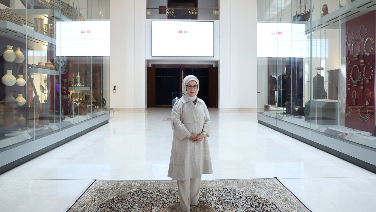 Emine Erdoğan, "Toprak ve İnsan", "Denizcilik Tarihi", "Silahlar ve Zırhlar", "Medeniyetin Oluşumu" ve "Para Birimleri Zaman Çizelgesi" gibi isimleri olan galerilerde sergilenen eserler hakkında yetkililerden bilgi aldı.